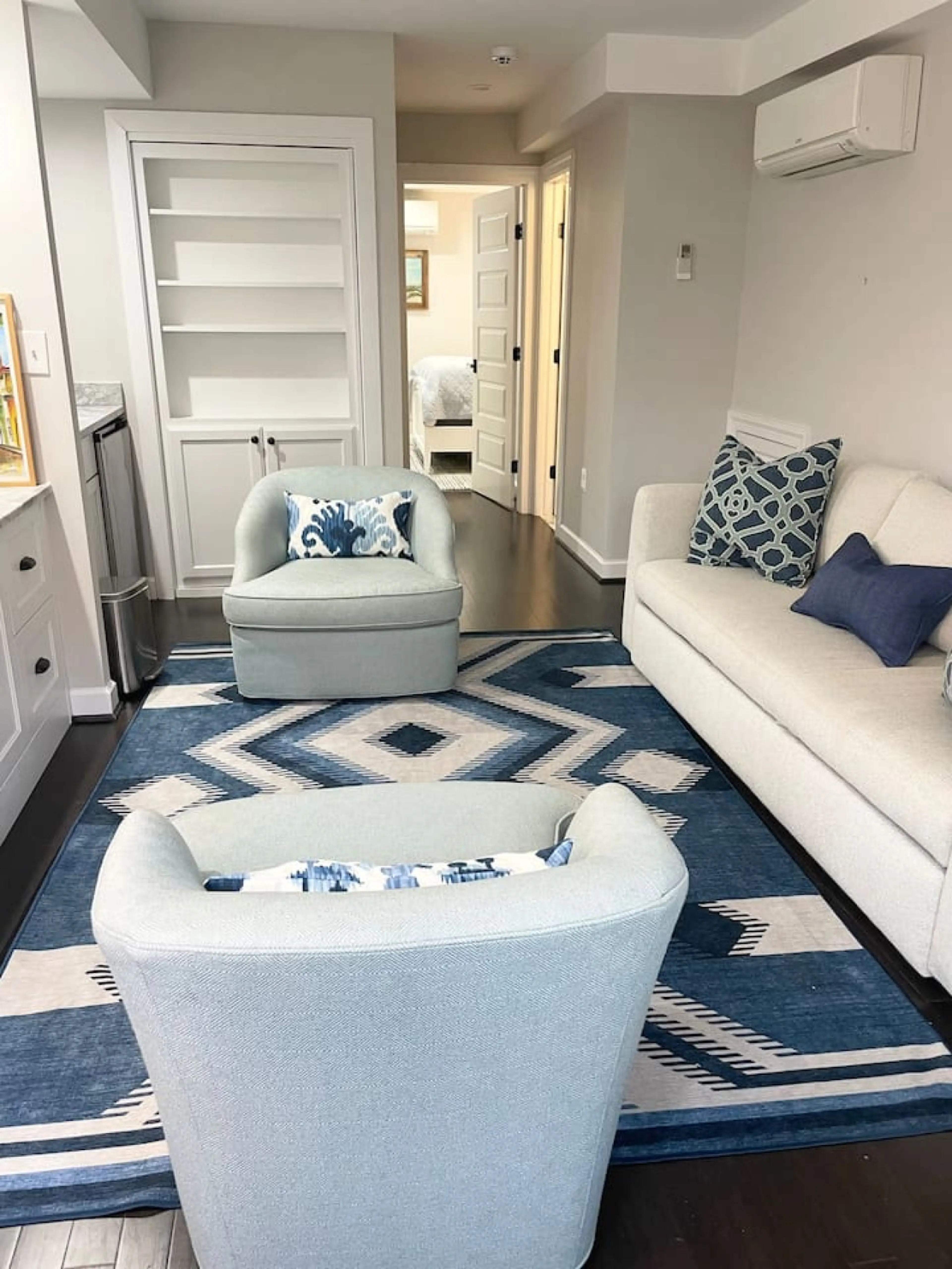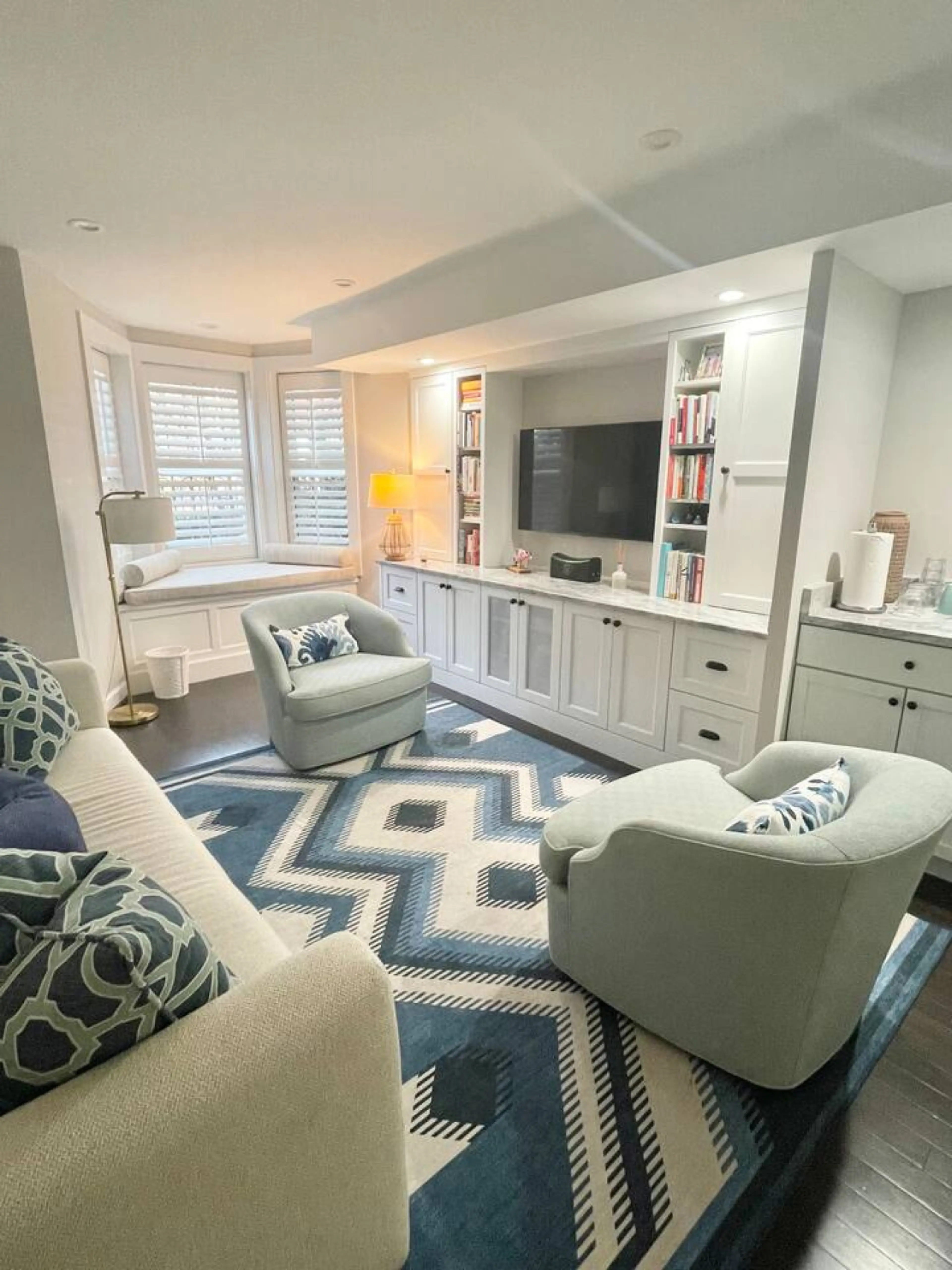 This English basement enjoys higher ceilings than most D.C. row homes and boasts a luxurious living room w/ bench seating and storage in the bayfront as well as a full wall of cabinetry offering a media center. A chic, full bath and legal bedroom provide the perfect guest quarters. While masterfully...